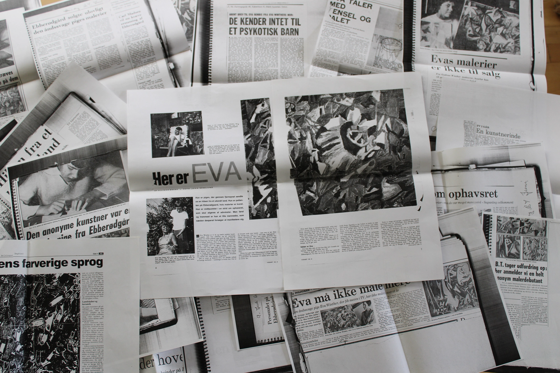 Der er talrige artikler fra den periode med portrætter af Eva, debatindlæg om ophavsret og synet på mennesker med udviklingshandicap i det hele taget. Det lykkedes til sidst Gudrun at fremskaffe langt de fleste af de omkring 40 malerier, man kendte til – med hjælp fra landsretssagføreren Carl Madsen, der blandt andet var kendt for at repræsentere personligt og økonomisk ressourcesvage mennesker.