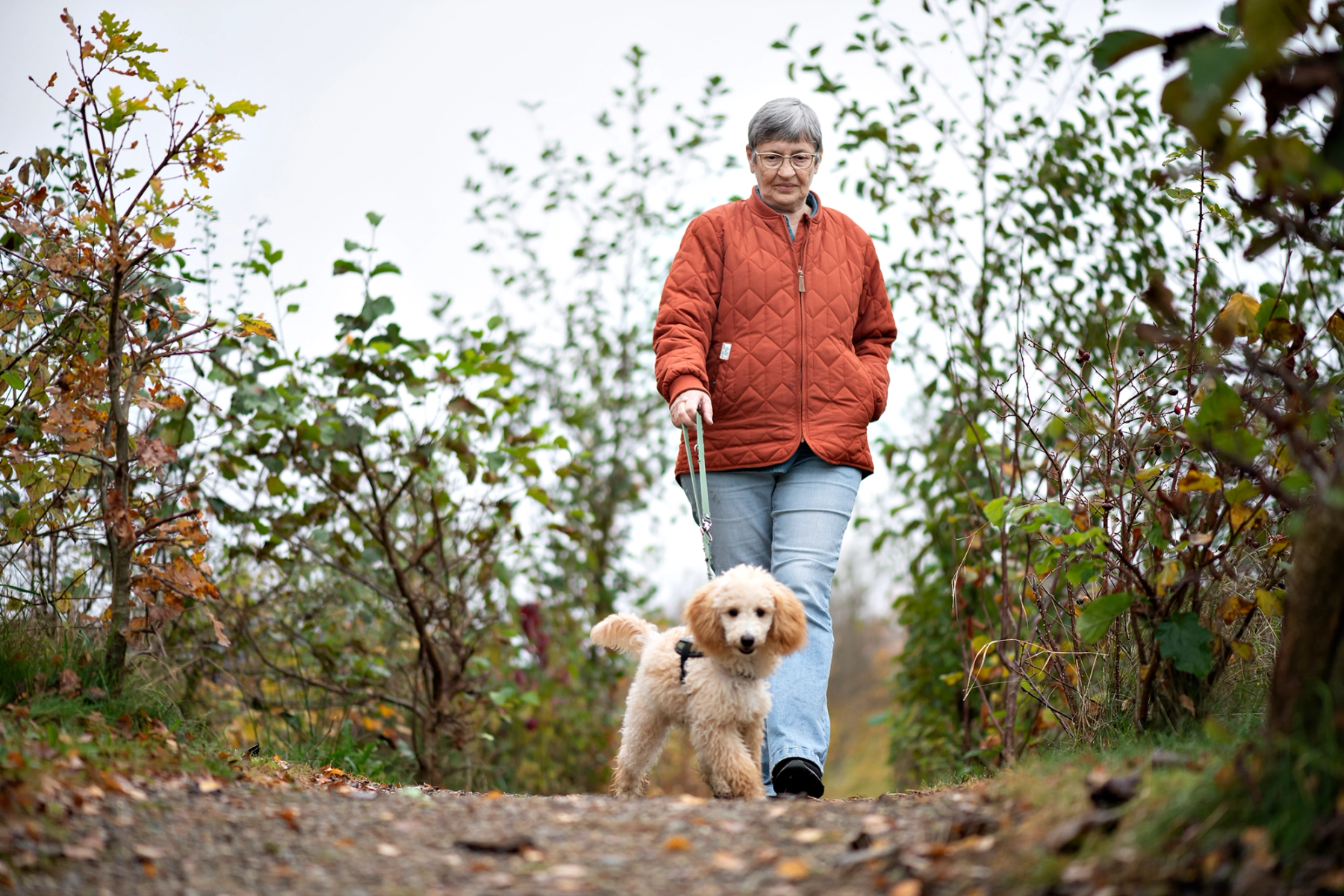 Dorte lader op ved at gå ture med den seks måneder gamle puddel, Palle.